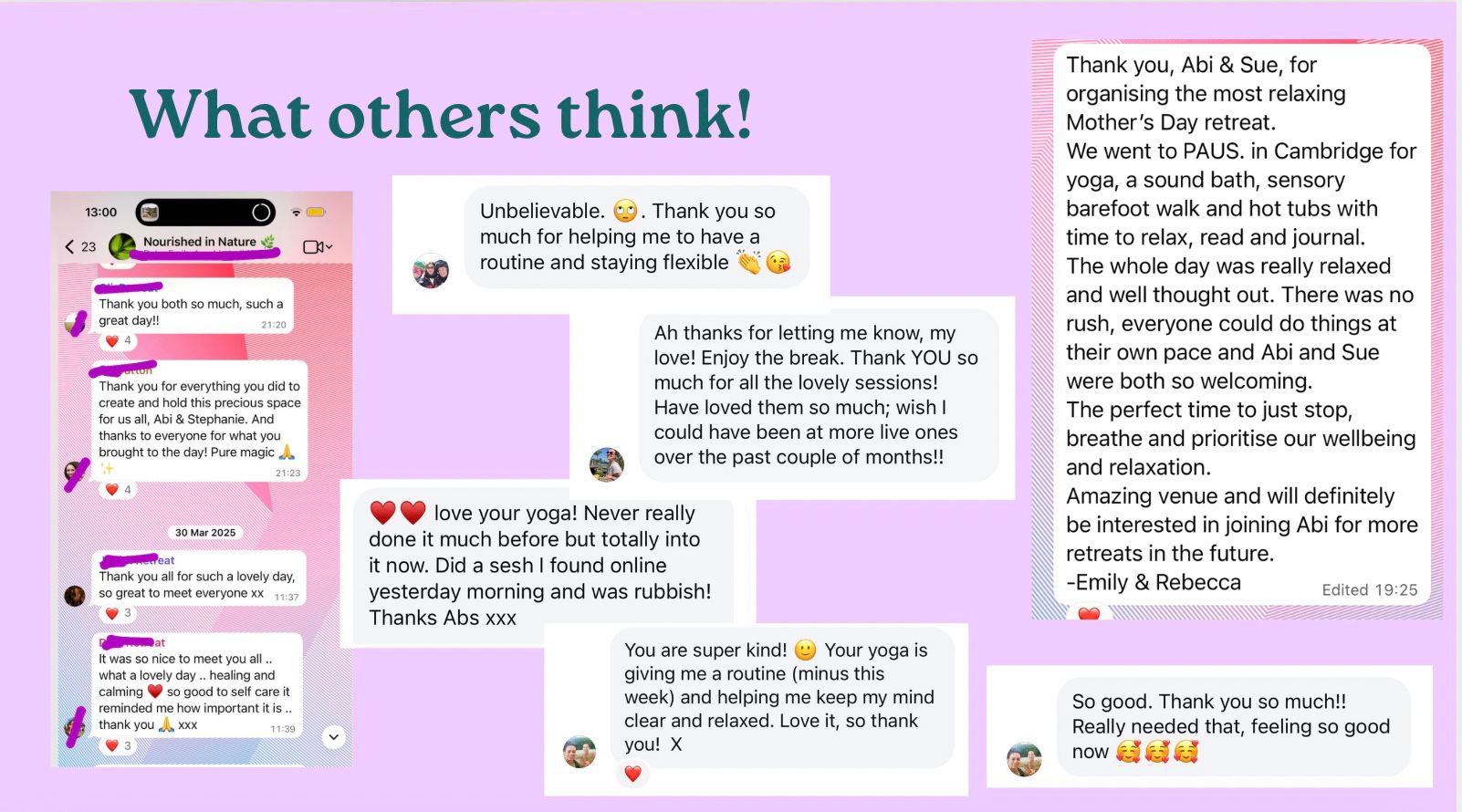 Abi and Steph's "Nourished in Nature" retreat was mind-blowing! And I mean that in the calmest, most healing way possible! I love Abi's yoga classes so knew I was going to enjoy the movement part of the day, but I wasn't expecting to learn so much about myself and the way I approach things. Every part of the day was so perfectly thought out and incorporated movement, open conversation, incredible food and the chance to engage with and listen to others. It made me stop, reflect and think about how much value I put in myself (or don't...!) as well as giving me great life tools that I still use. The nature bath and sound bath were out of this world - I felt like I went to another world during the sound bath! Thank you Abi and Stephanie for such an enlightening experience!